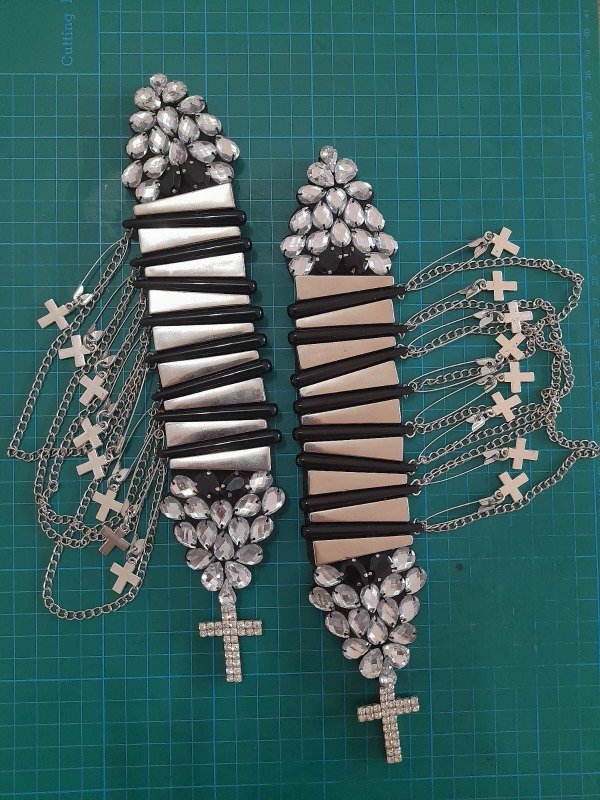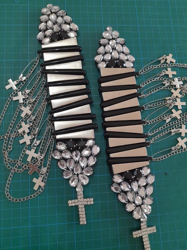 Medidas: largo del aplique 25 cm + 3 cm cruz de strass
